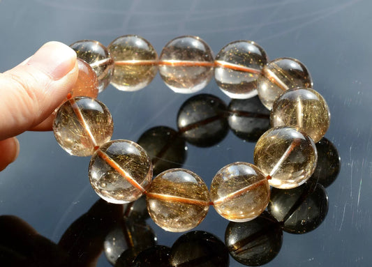 106.79g NATURAL BRAZIL GOLD HAIR RUTILATED QUARTZ BEADS WEALTH BRACELET MEN
