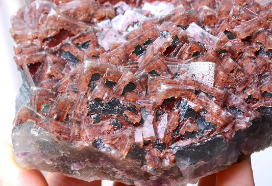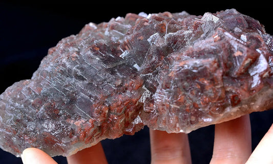 411g Natural Transparent Red "Phantom" Cube Fluorite Cluster Mineral Specimen