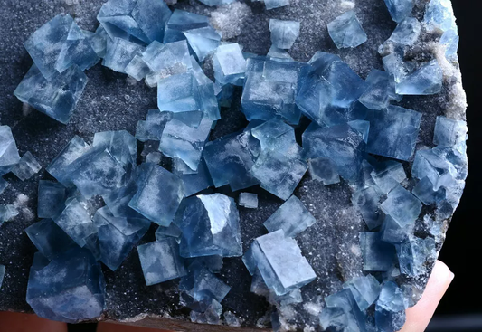 408g Natural Transparent Blue Cube Fluorite CRYSTAL CLUSTER Mineral Specimen