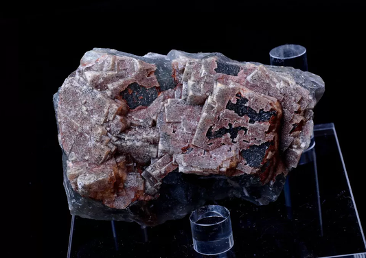 503.g Natural Transparent Red "Phantom" Cube Fluorite Cluster Mineral Specimen