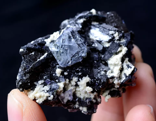 49g New Find Transparent Purple Fluorite & Wolframite CRYSTAL Mineral Specimen