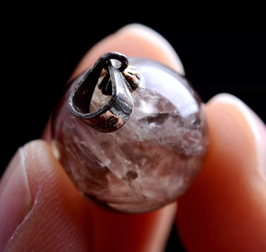 5.3g Natural Gold Rutilated Crystal Ball Woman Cure Healing Pendant Silver