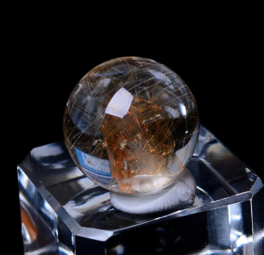 5.67g Natural Gold Rutilated "Stone Inside Stone"Quartz Crystal Pendant Ball