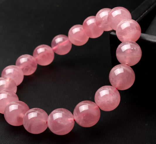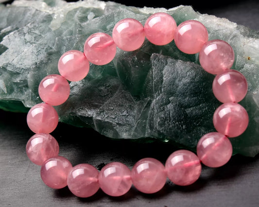 12 mm Natural Madagascar Rose Quartz Crystal Round Beads Madam Gift Bracelet