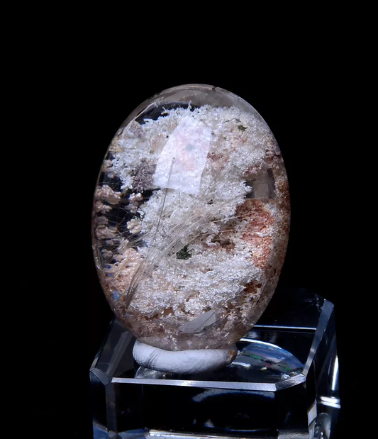 12.75g Natural Rare White Ghost Phantom Gold Rutilated Quartz Crystal Pendant