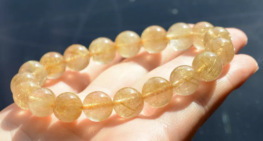11mmNatural Brazil Gold Hair Rutilated Quartz StretchBeads Wealth Man Bracelet