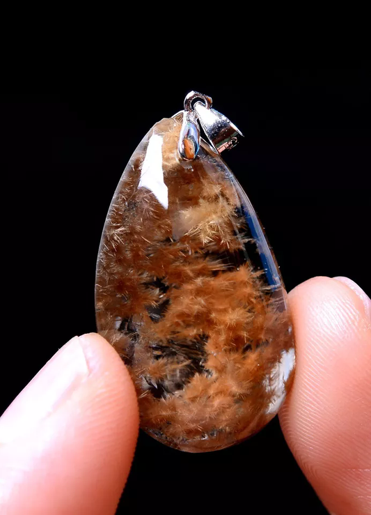 9g Natural Rare Color Ghost Crystal Gold Hair Cure Pendant Silver Inlaid