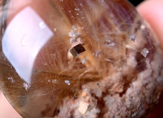 98.60ct Natural Gold Hair Rutilated & calcite Red Ghost Quartz Crystal Pendant