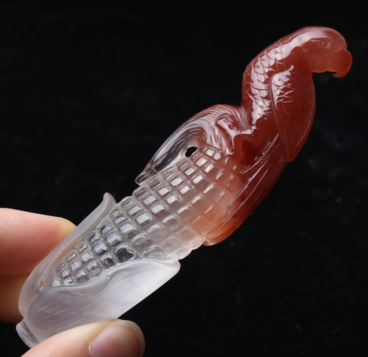 NATURAL GEM RED QUARTZ CRYSTAL CARVED PARROT FURNISHING ARTICLES 57.67g