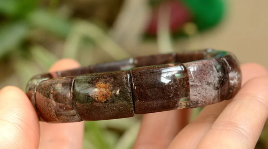 Natural Colorful Red Ghost Phantom Quartz Crystal Men Bracelet Elastic 44.55g