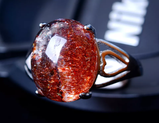 Natural Gem Red Super Seven Quartz Lepidocrocite Women Ring Adjustable 16.95ct