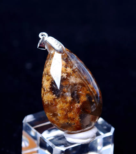 Natural Gold Rutilated Quartz Crystal "Stone Inside Stone" Silver Pendant 9.68g