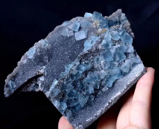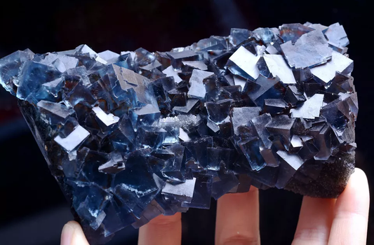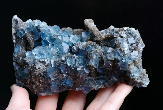 665g New Find Transparent Blue Cube Fluorite Crystal Cluster Mineral Specimen
