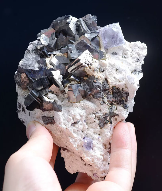 665g Natural Arsenopyrite & Purple Fluorite Mineral Specimen /Yaogangxian China