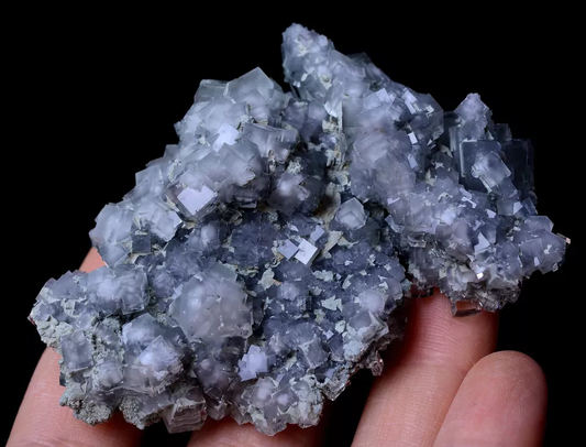 726gTransparent Blue-Green Cube Fluorite CRYSTAL CLUSTER Mineral Specimen/China