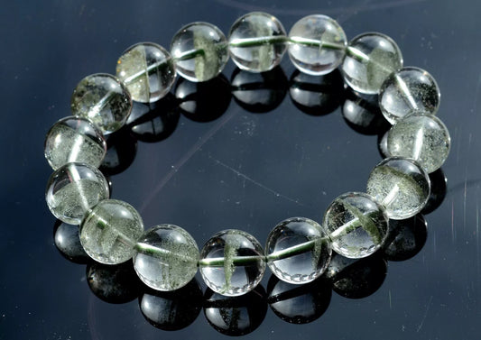 Natural Green Phantom Crystal Ghost Round Beads Man Treatment Bracelet 56.55g