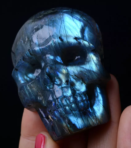 Natural Labradorite Quartz Crystal Skull Carving Reiki Healing Specimen 93.81g