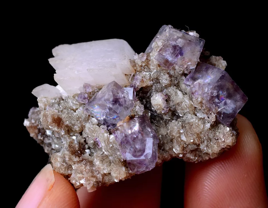 17.07g RARE! NATURAL PURPLE CUBIC FLUORITE & CALCITE SYMBIOTIC MINERAL SPECIMEN