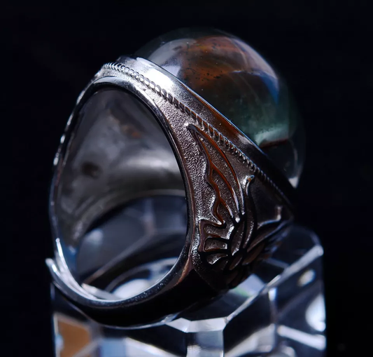 18.35g Natural Green ghost Crystal Healing Wealth Silver Plated Adjustable Ring