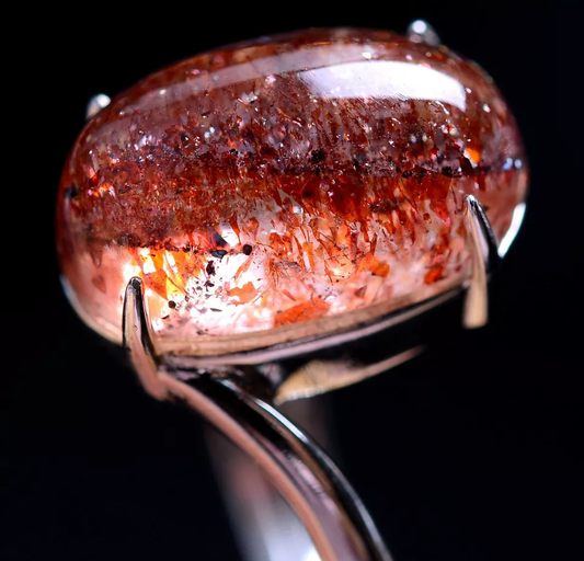 17ct Natural Red Super Seven Quartz Lepidocrocite Fine Silver Ring Adjustable