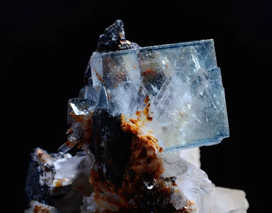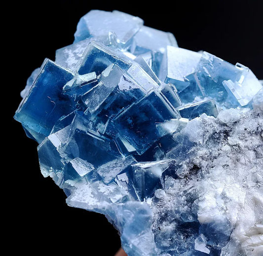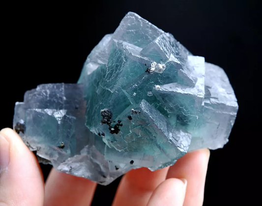 185.0g Natural Transparent Window Blue Cube Fluorite CLUSTER Mineral Specimen