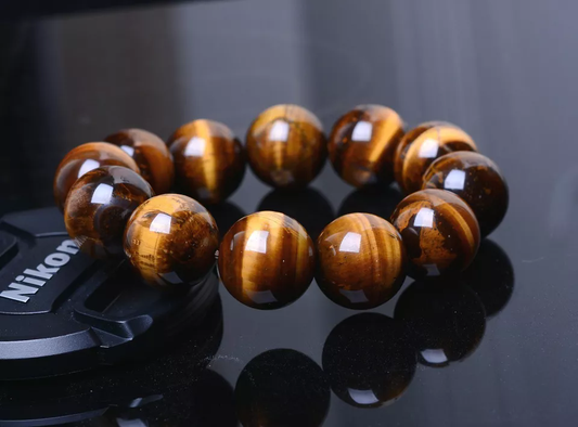 18mm Natural Brazil Yellow Tiger's Eye Men Gemstone Round Beads Men Bracelet