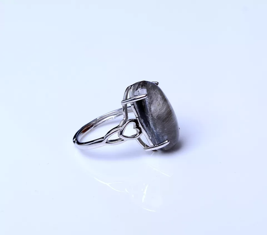 20.85ct Natural Silver Rutilated Quartz Titanium Crystal Adjustable Silver Ring