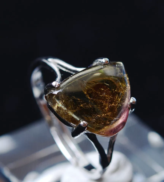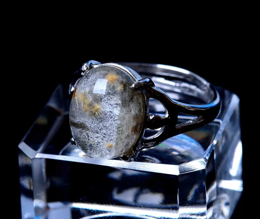 2.71g Natural Gold Rutilated Quartz Crystal Sunflower Rutilated Crystal Ring