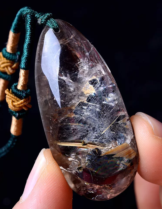 20.56g RARE NATURAL Clear Mica & Gold Hair Rutilated Quartz Crystal Pendant