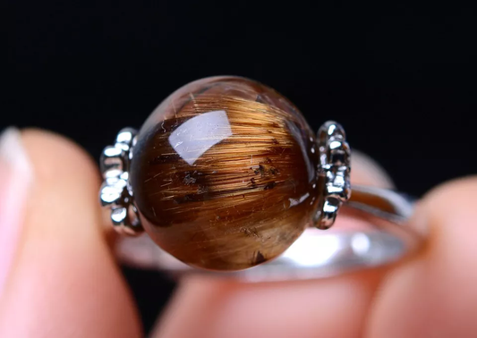20*13*10mm Natural Gold Hair Rutilated Quartz Beads Wealth Man & Woman Ring