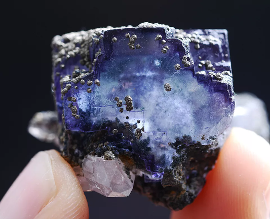24gNatural Phantom Purple Fluorite Pyrite Crystal Mineral Specimen/Yaogangxian