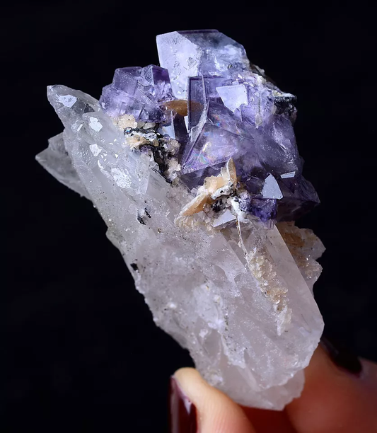 52g YaoGang Xian RARE PURPLE CUBIC FLUORITE & CALCITE SYMBIOTIC MINERAL SAMPLES