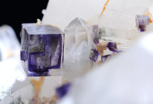 59gNatural Bismuthinite Purple FLUORITE & Calcite Mineral Specimen/ Yaogangxian