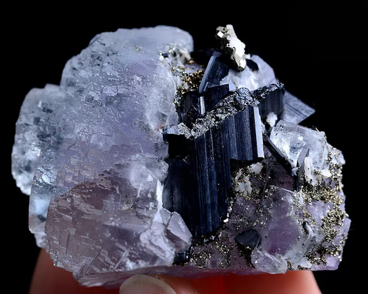 80gNatura Purple FLUORITE Wolframite &Pyrite Mineral Specimen/Yaogangxian China