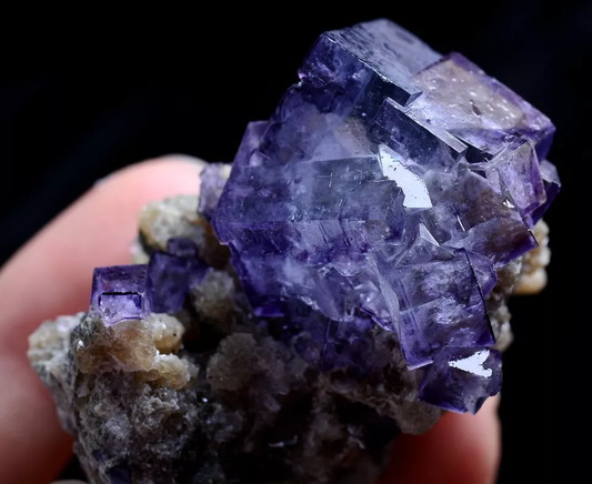 82g NATURAL QR CODE RARE PURPLE CUBIC FLUORITE CRYSTAL MINERAL SPECIMEN