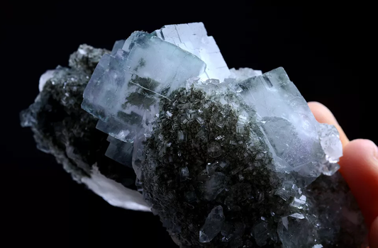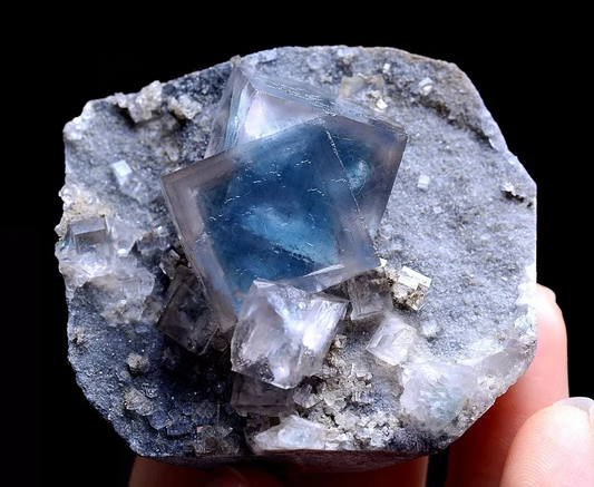 124g New Find Transparent Blue Cube Fluorite Crystal Cluster Mineral Specimen