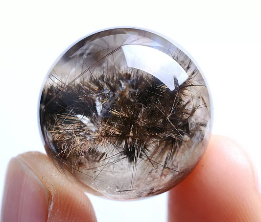 12.9g Natural Rare Silver Hair Rutilated Quartz Titanium Flowers Crystal Ball