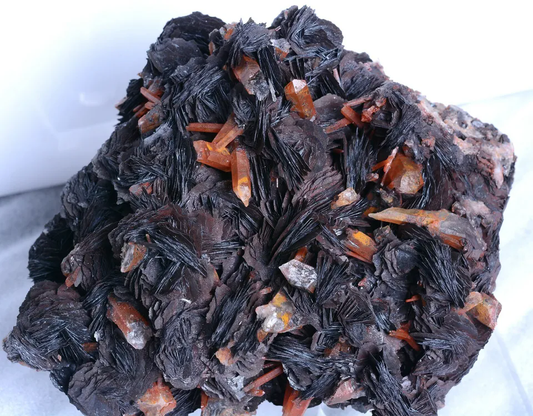 1215gNatural Yellow Crystal Cluster & Flower Shape Specularite Mineral Specimen